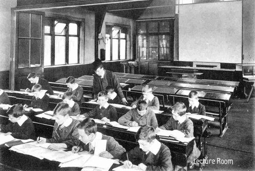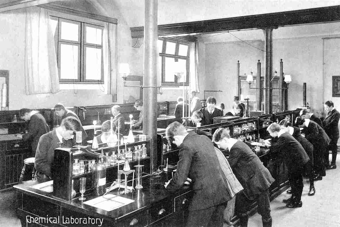 The first chemistry lab became a dinning room for pupils with their own sandwiches.